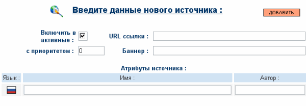 - Включить в активные – если установлено, то источник отображается в списке выводимых в новостях.