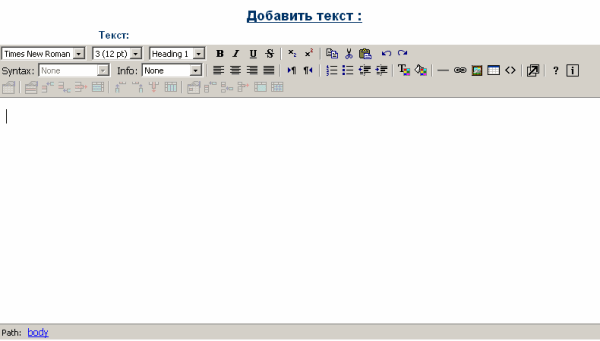 Блок типа WYSIWYG содержит визуальный редактор, с помощью которого можно редактировать текст, добавлять таблицы, менять и форматировать текст, ставить ссылки и т.п.