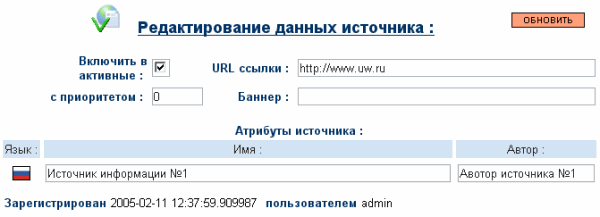При клике на источник открывается окно редактирования источника: